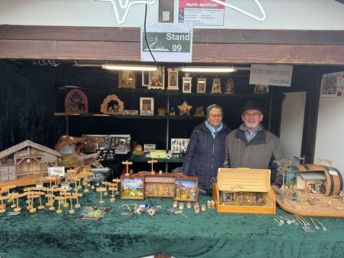 Das Angebot war erneut beeindruckend vielfältig: handgearbeitete Kunstwerke, Weihnachtsdekoration in allen Variationen, kunstvolle Krippen, Kerzenständer, Adventskerzen sowie gestrickte Kleidung für Groß und Klein – und das ist nur ein Ausschnitt dessen, was es zu entdecken gab. Für das leibliche Wohl sorgten frisch gebackenes Brot, selbstgemachte Kuchen und Plätzchen, Pommes, Würstchen, Spießbraten, Erbsensuppe, Flammkuchen und Gemüse-Waffeln. Dazu gab es Glühwein in Rot und Weiß, Apfelsaft, Eierpunsch und weitere Getränke.