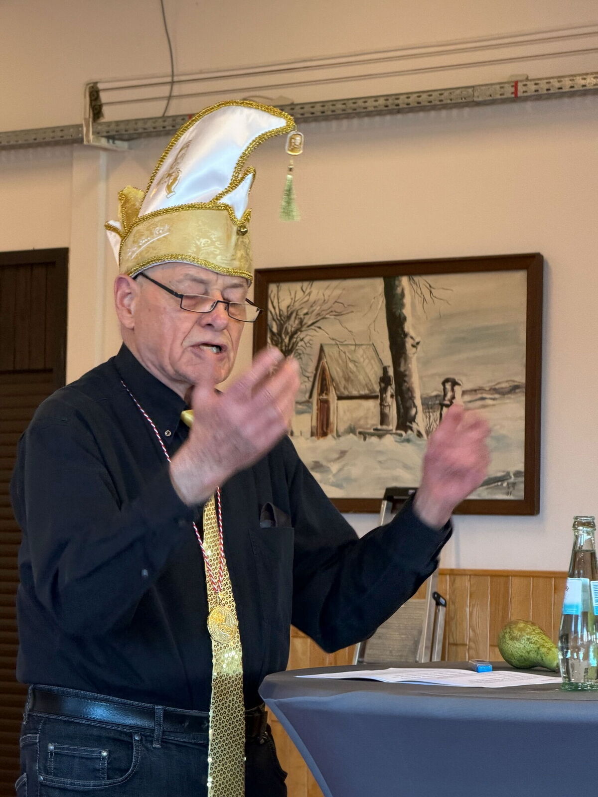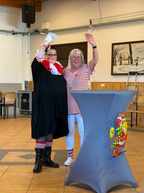 Trotz hartnäckiger Erkältung hatte Ginette wieder ein fantastisches Programm auf die Beine gestellt. Die Büttenreden ließen kein Auge trocken: