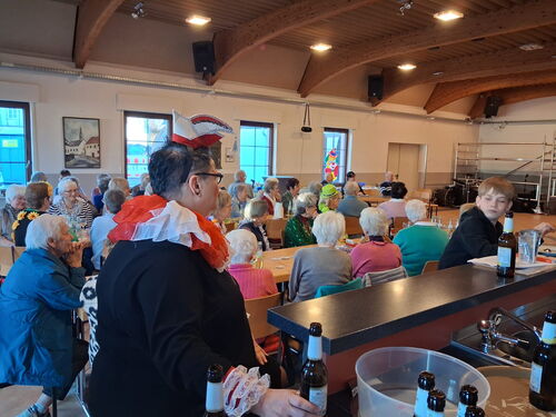 Am Mittwochnachmittag holten wir unsere „Nach-Karneval-Party“ gebührend nach. Bei Kaffee, Kuchen und später auch bei Kaltgetränken wie Bier, Moormännchen und Williams Christ genossen zahlreiche – teils bunt kostümierte – Senioren die gesellige Runde. Jede(r) wurde von Ginette direkt mit einem schicken Karnevalsorden in Empfang genommen.